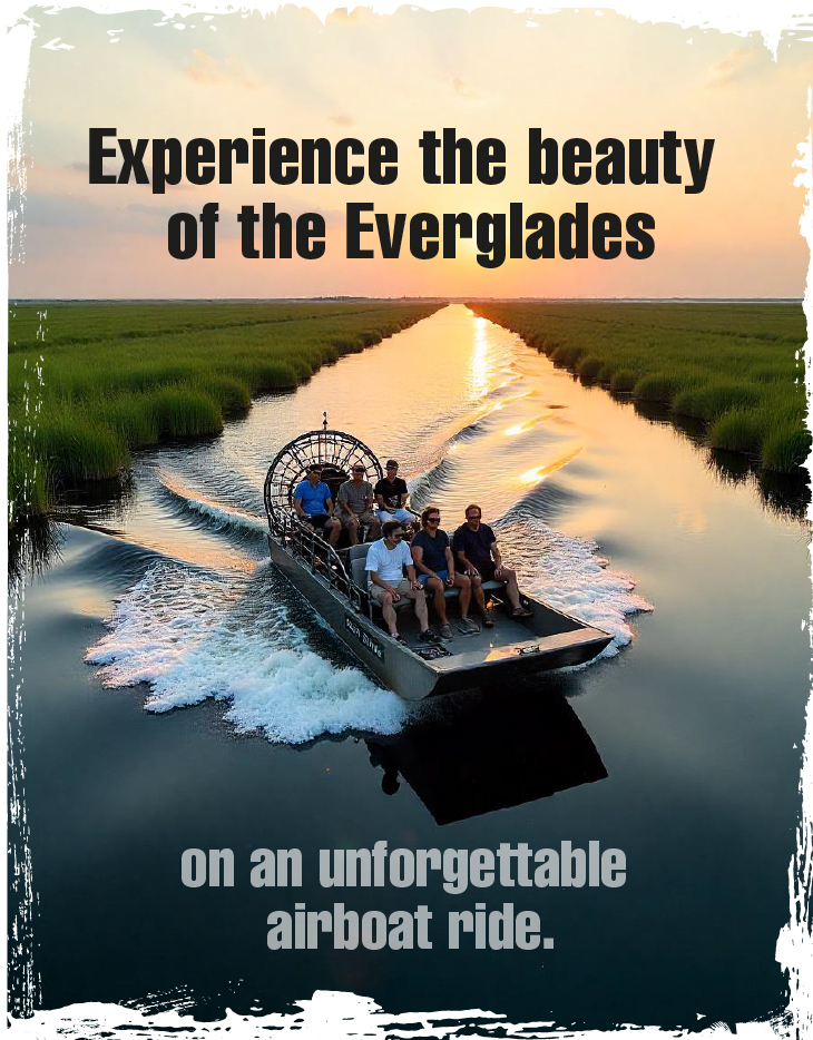 Experience the beauty of the Everglades while riding an airboat take an unforgettable journey on an airboat ride through Florida’s Everglades National Park, which includes an alligator show Join our expert captains for 60 minutes of educational family fun in the Florida Everglades. Learn about the unique plants and animals that live in your very own backyard.